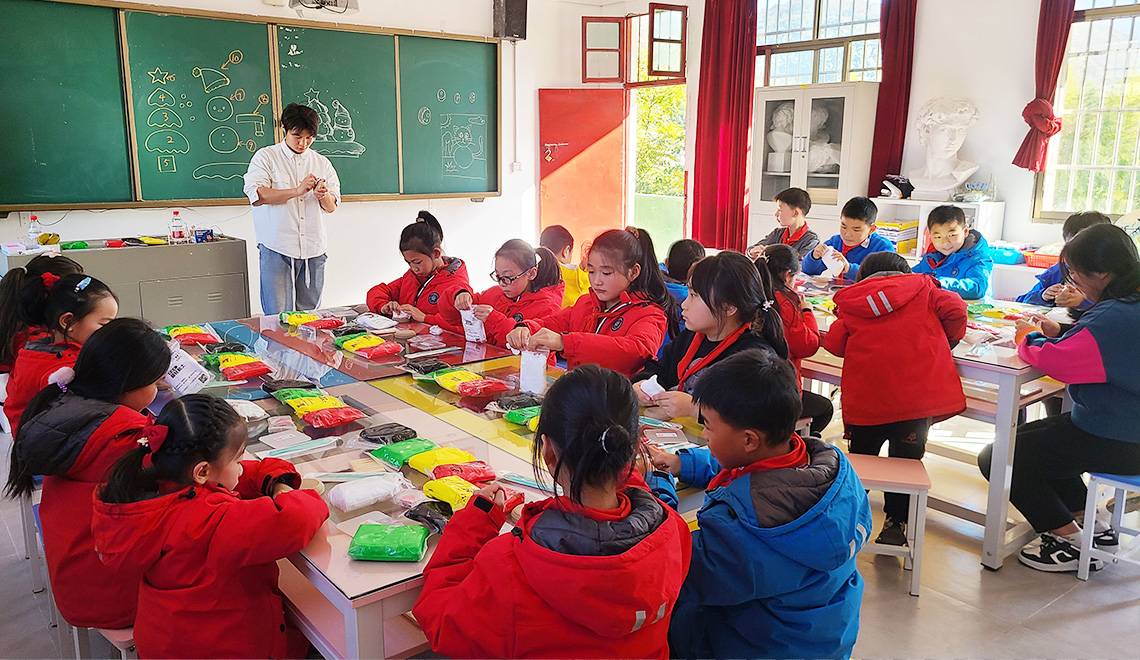在金鸡山小学的揭牌仪式上,孩子们精心准备了鼓号队《义勇军进行曲》《少先队队歌》现场表演,表达对爱心人士的感谢之情,孩子们的精彩演奏赢得了大家连连称赞。而在港背小学,由精臣组织的公益手工教学课堂也获得了学校师生的点赞,课程主要由精臣爱心代表教授20位学生进行手工黏土作品制作,以开拓学生们的兴趣,增强学生们的动手能力。
